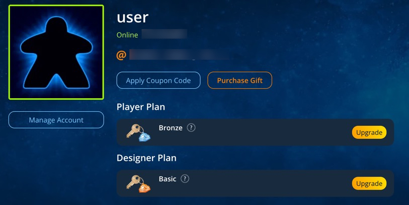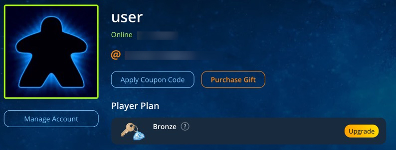 Go to Tabletopia, open your profile and click Manage Account.
